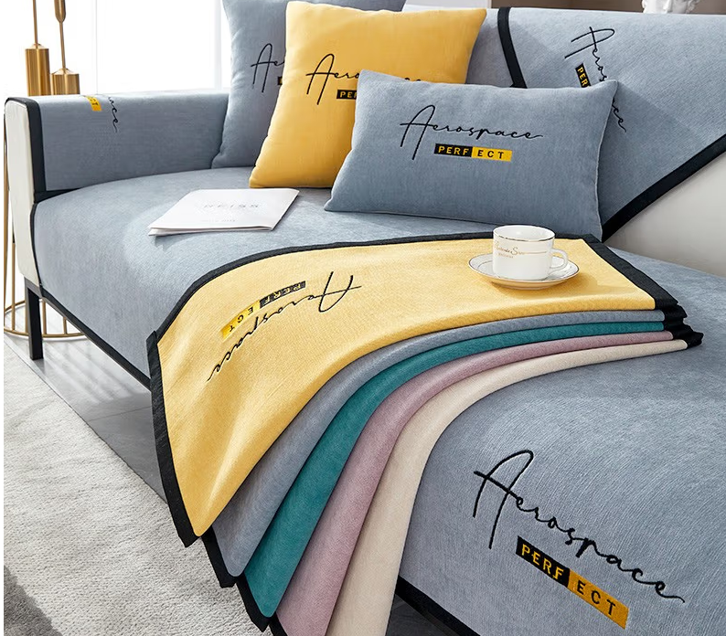 钟爱一生(CHERISHES LIFE)刺绣雪尼尔沙发垫套装四季通用沙发罩套巾防
